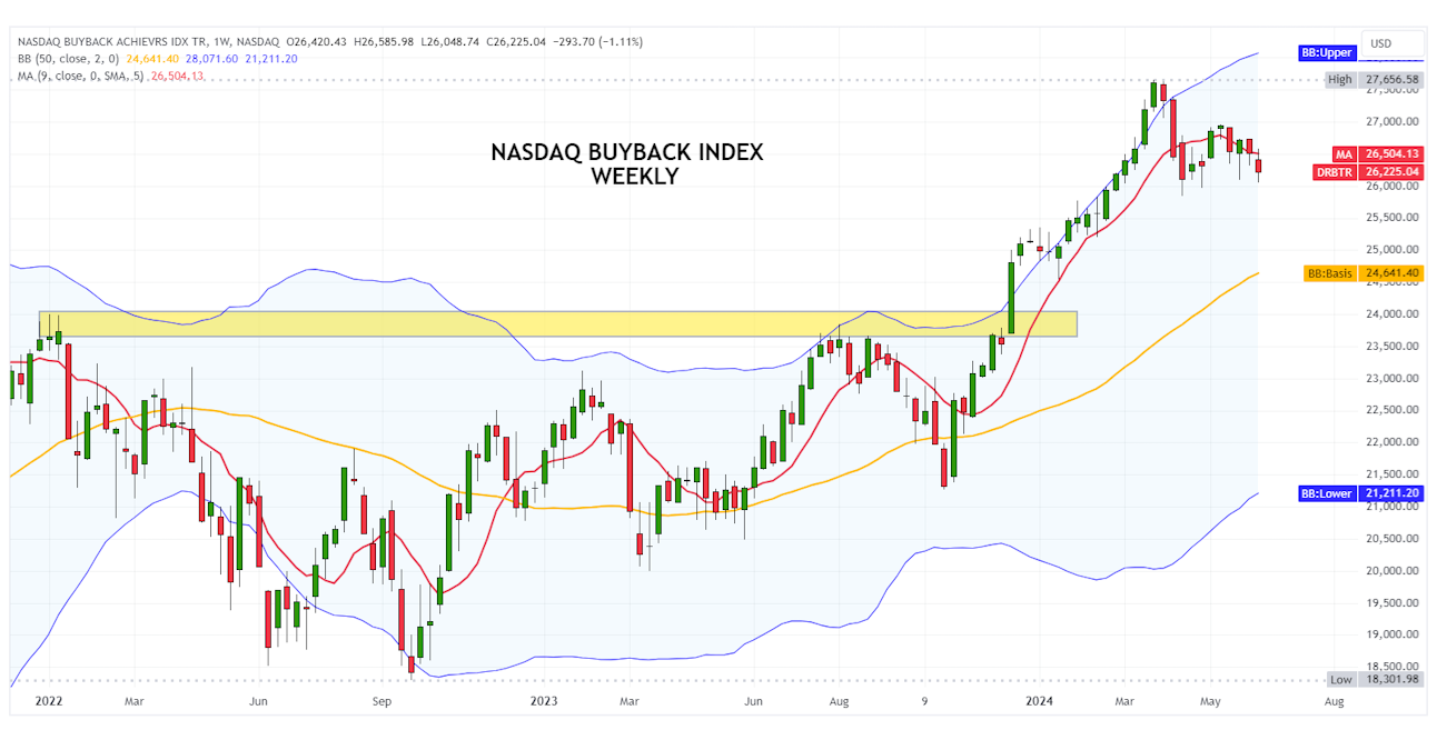 Nachdem der Nasdaq BuyBack Index die solide grafische Barriere im Bereich von 23.850-24.000 Punkten durchbrochen hatte, machte er eine schnelle Aufwärtsbewegung und stieg auf einen Höchststand von 27.656 Punkten.