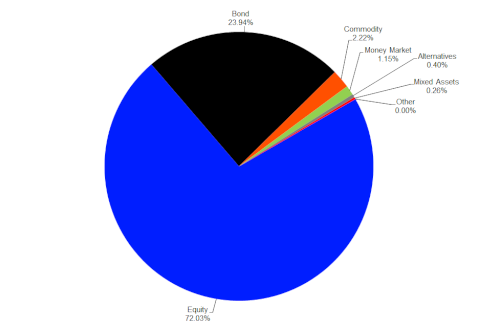 As for the overall structure of the European ETF industry, it was not surprising equity funds (€1,014.0 bn) held the majority of assets, followed by bond funds (€337.1 bn), commodities products (€31.3 bn), money market products (€16.2 bn), alternative UCITS products (€5.6 bn), and mixed-assets funds (€3.6 bn).